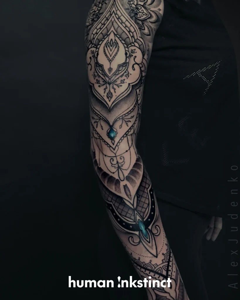 Alex steht für kompromisslose Präzision, starke Kontraste und großflächige Tattoos, die den Körper als Ganzes verstehen. Seine Arbeiten bewegen sich souverän zwischen Mandala, Geometrie, Blackwork und ornamentalen Elementen und zeichnen sich durch eine außergewöhnlich saubere Linienführung sowie perfekt kontrolliertes Dotwork aus.