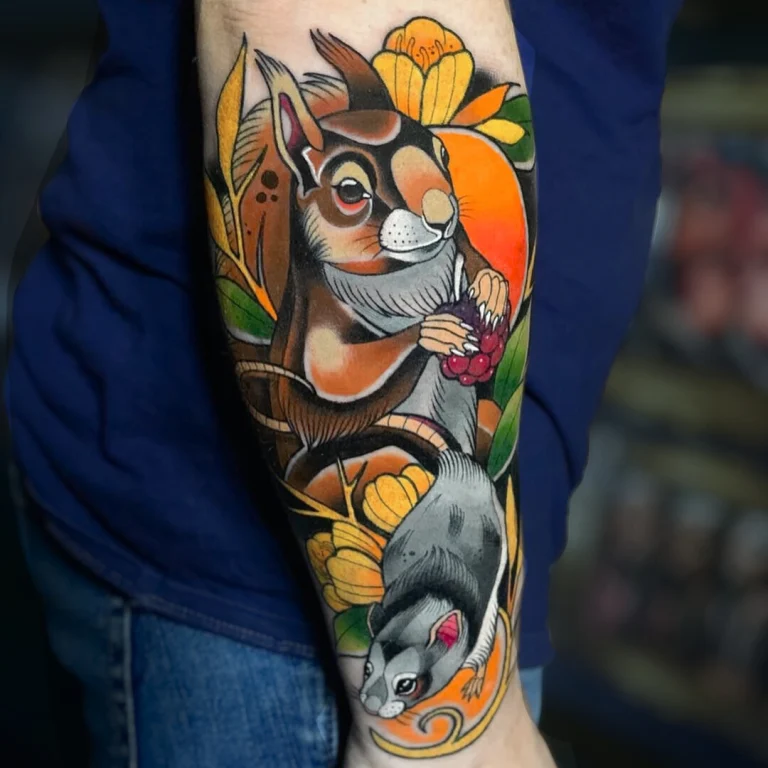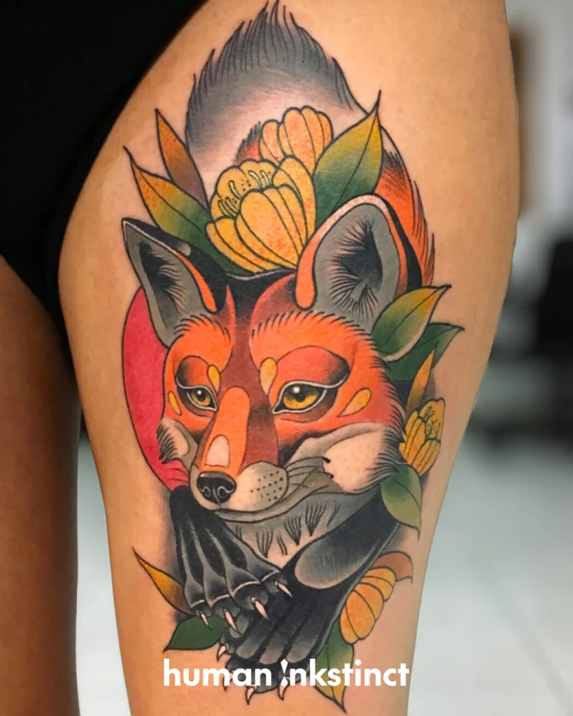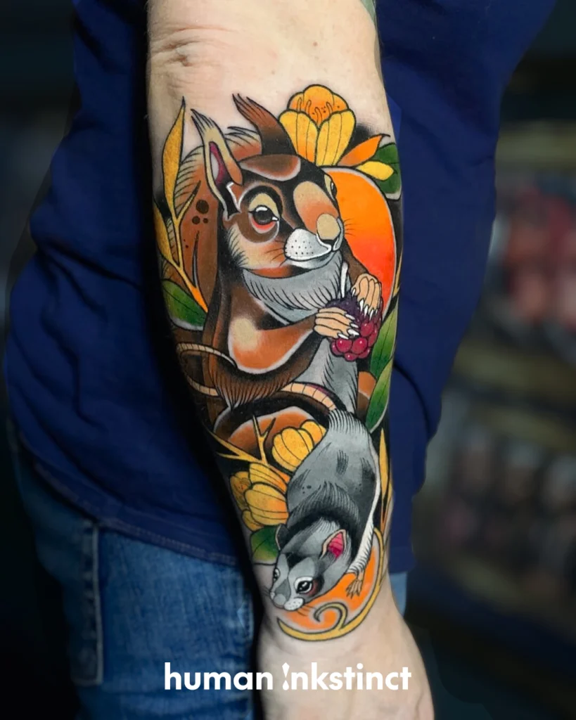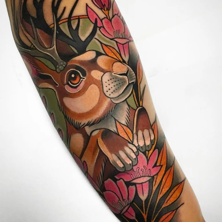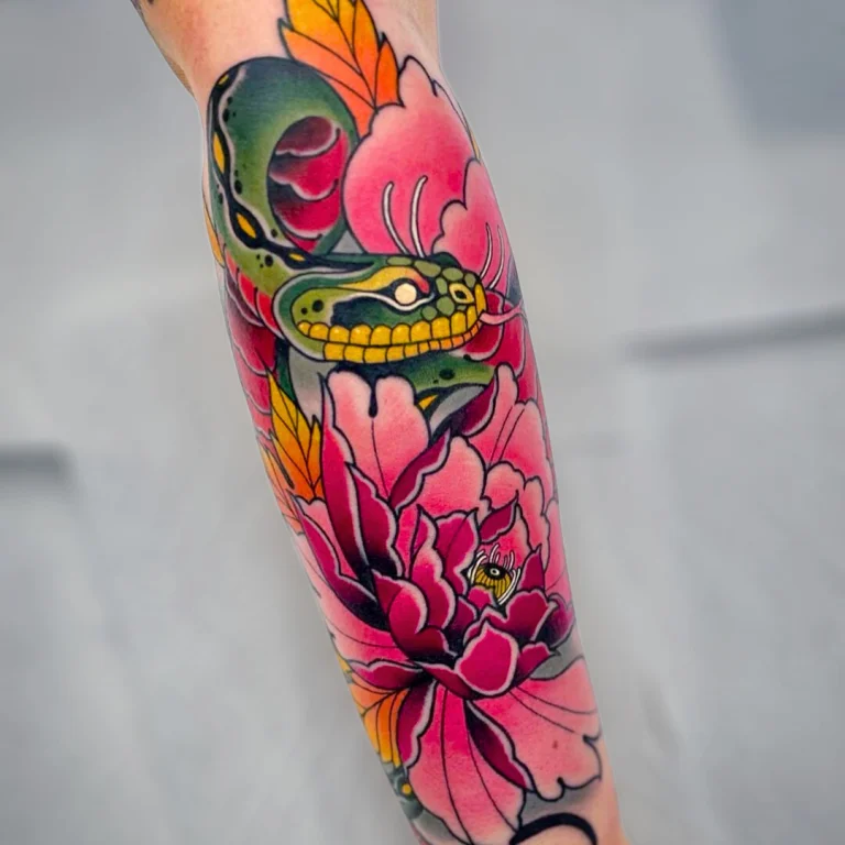 Sein Stil lebt von kraftvollen Motiven: Besonders häufig stehen Tiere, Portraits und symbolstarke Designs im Mittelpunkt – oft kombiniert mit floralen Elementen oder dynamischen Kompositionen, die den Körper perfekt mit einbeziehen. Genau diese Balance aus „bold & clean“ sorgt dafür, dass seine Tattoos nicht nur in Fotos, sondern vor allem auch auf der Haut langfristig stark und hochwertig wirken.
