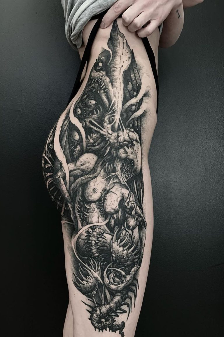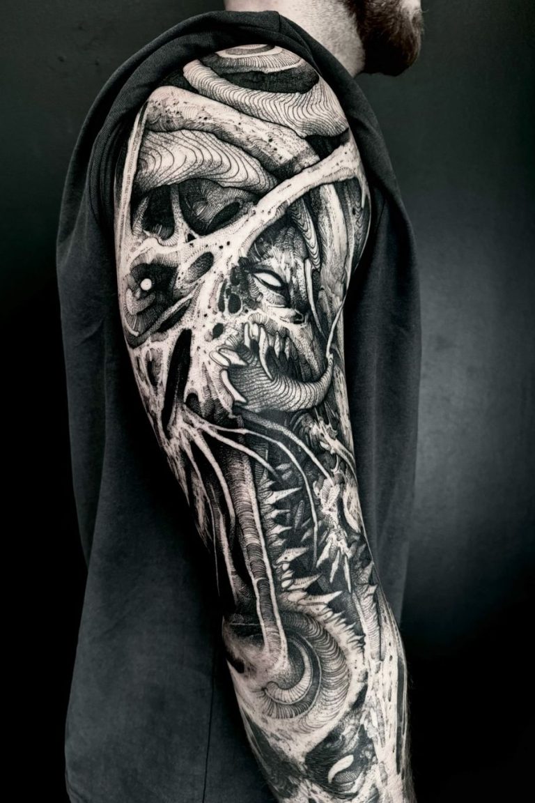 Ob dunkle Themen, surrealistische Elemente oder geheimnisvolle, fast unheimliche Motive – Andrius‘ Stil spricht vor allem Menschen an, die nach Tattoos mit einer tiefgründigen und intensiven Symbolik suchen. Sein Gespür für Linienführung und Schatten verleiht jedem seiner Werke eine einzigartige, dynamische Energie.
