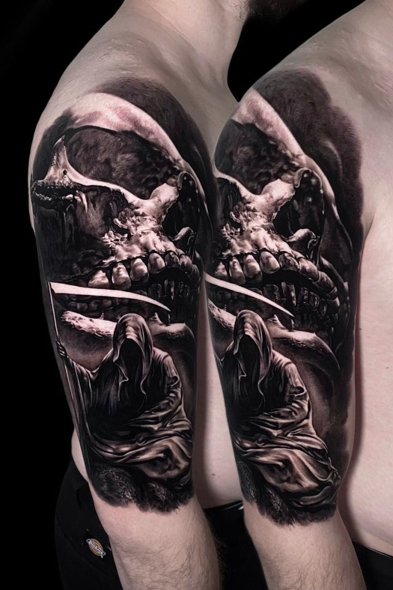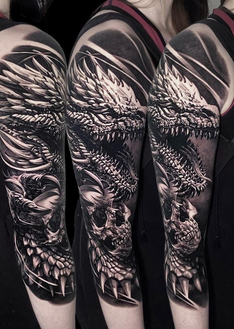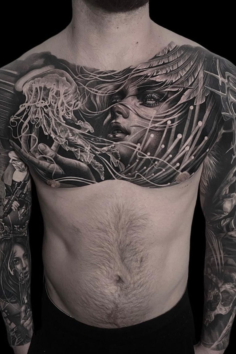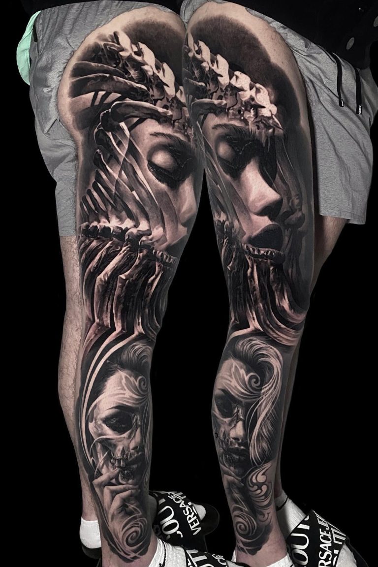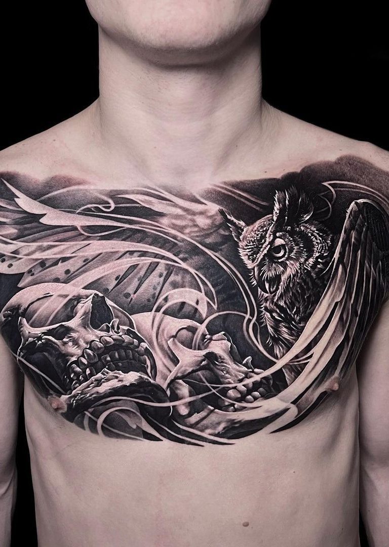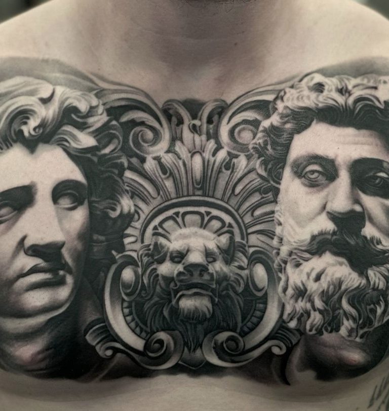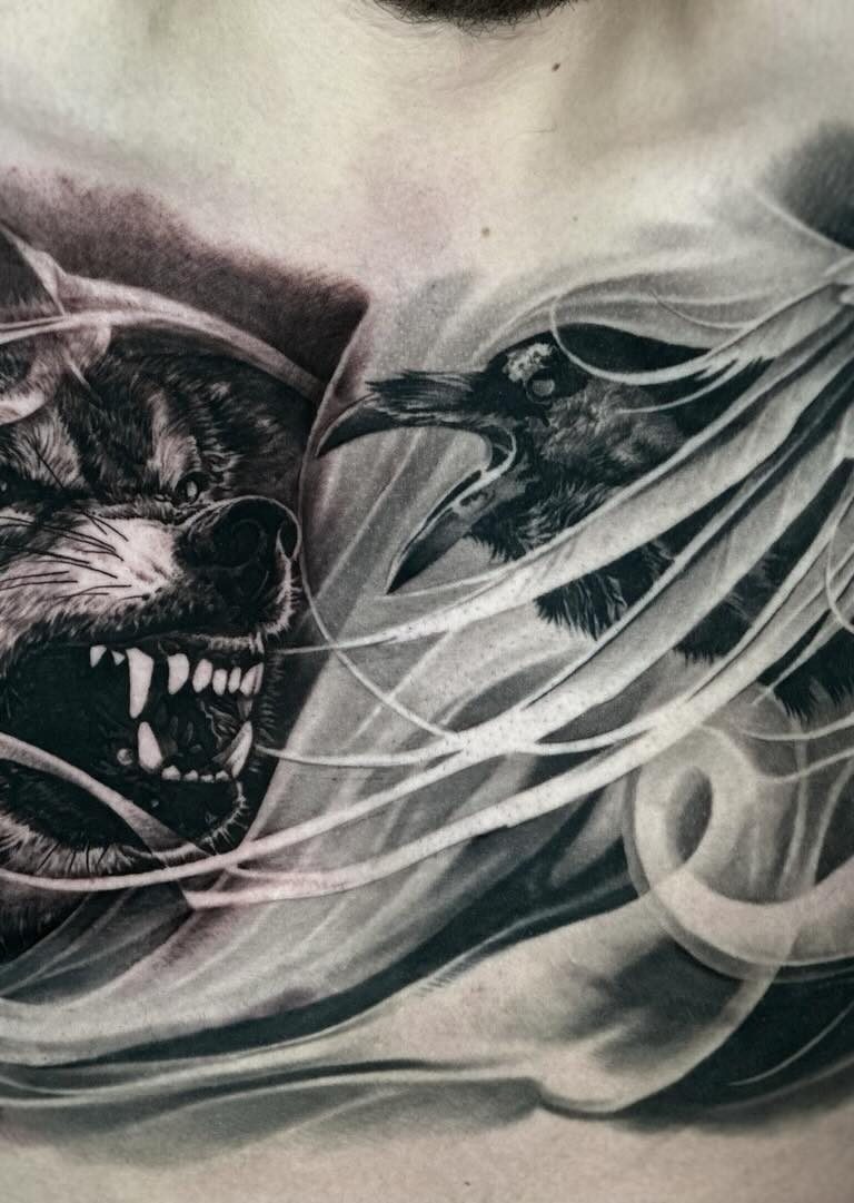Artioms Tattoos beeindrucken durch tiefes Schwarz, weiche Übergänge und sorgfältig platzierte Schattierungen, die selbst komplexe Details in einem atemberaubenden Realismus zum Leben erwecken. Ob Porträts, Naturmotive oder Szenen mit hoher künstlerischer Tiefe – seine großflächigen Kompositionen fügen sich perfekt an die Körperform an und verleihen jedem Tattoo eine eindrucksvolle Wirkung.
