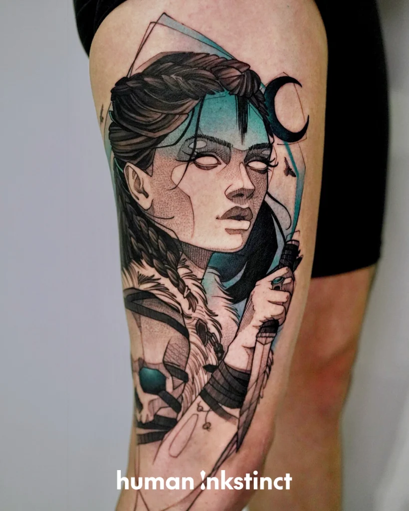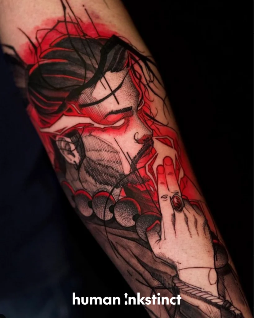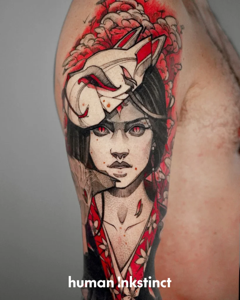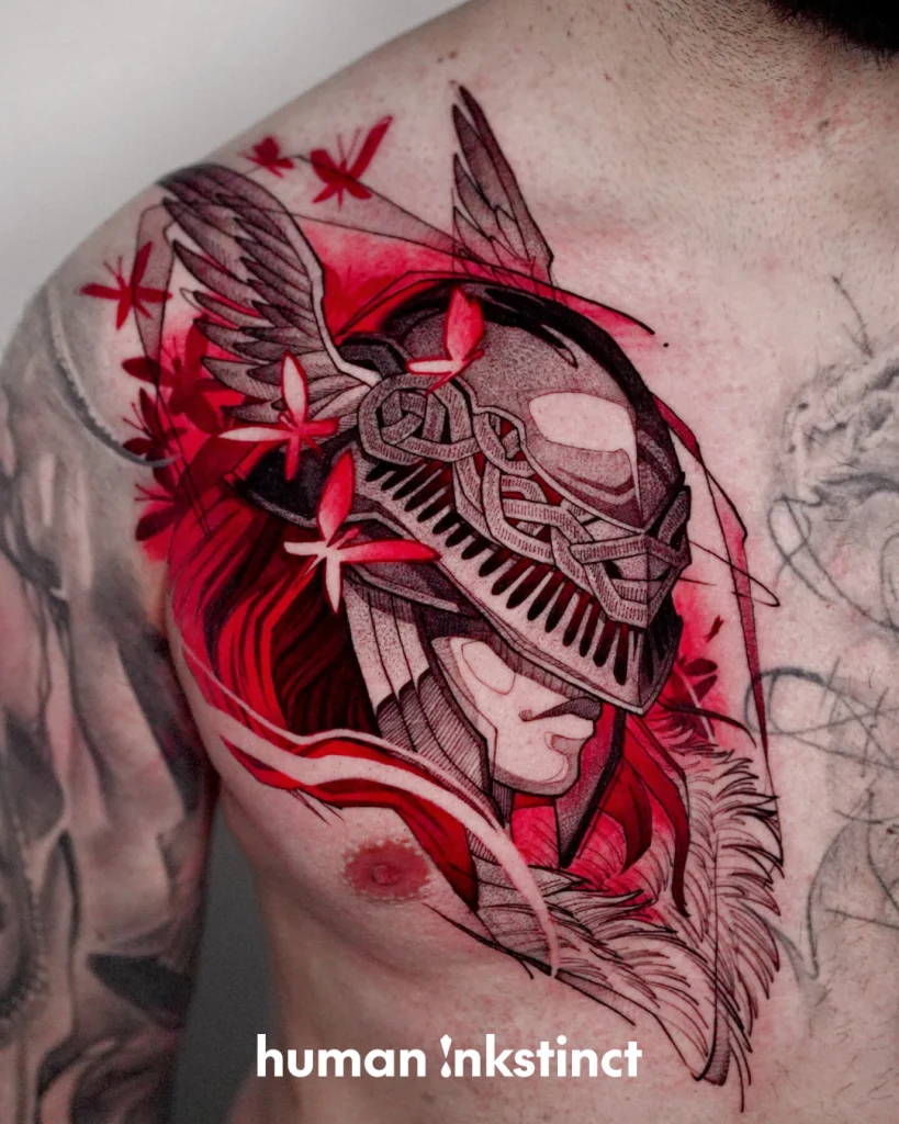 Kraftvolle Sketchart- & Graphic-Tattoos mit starken Farbakzenten