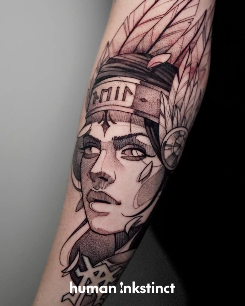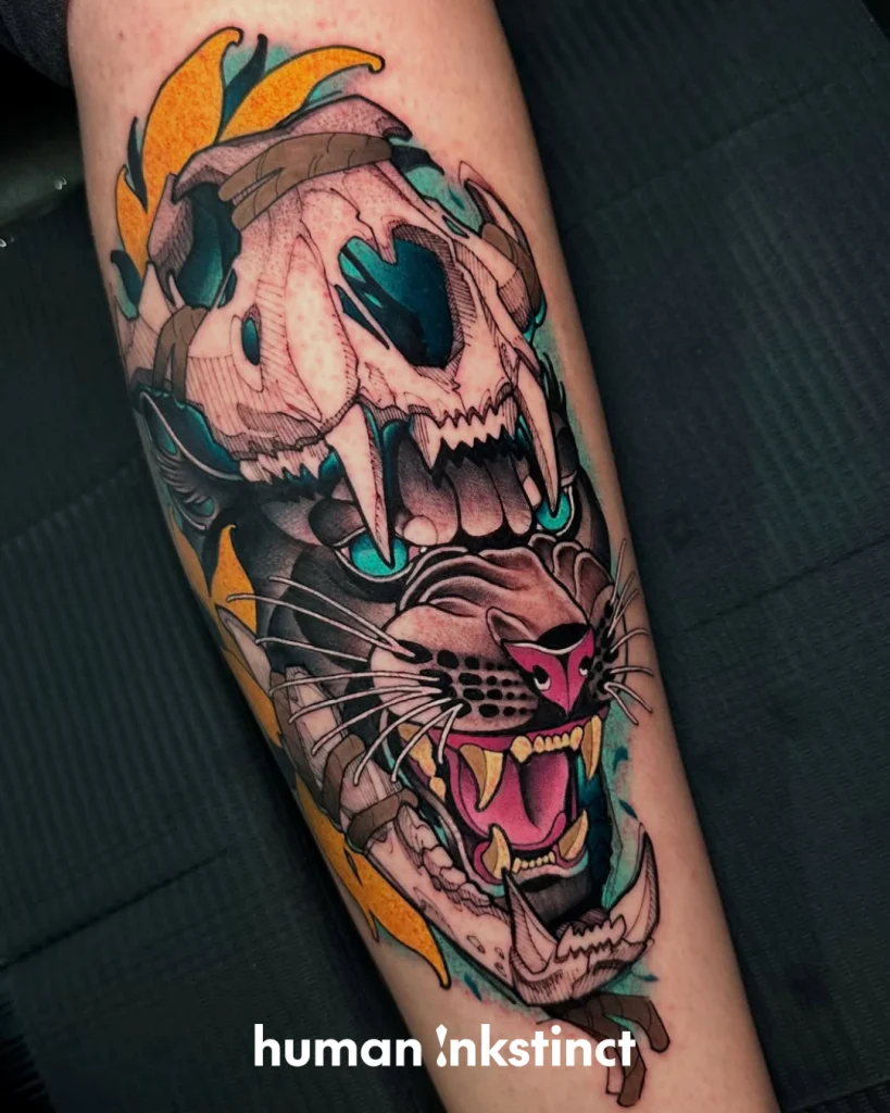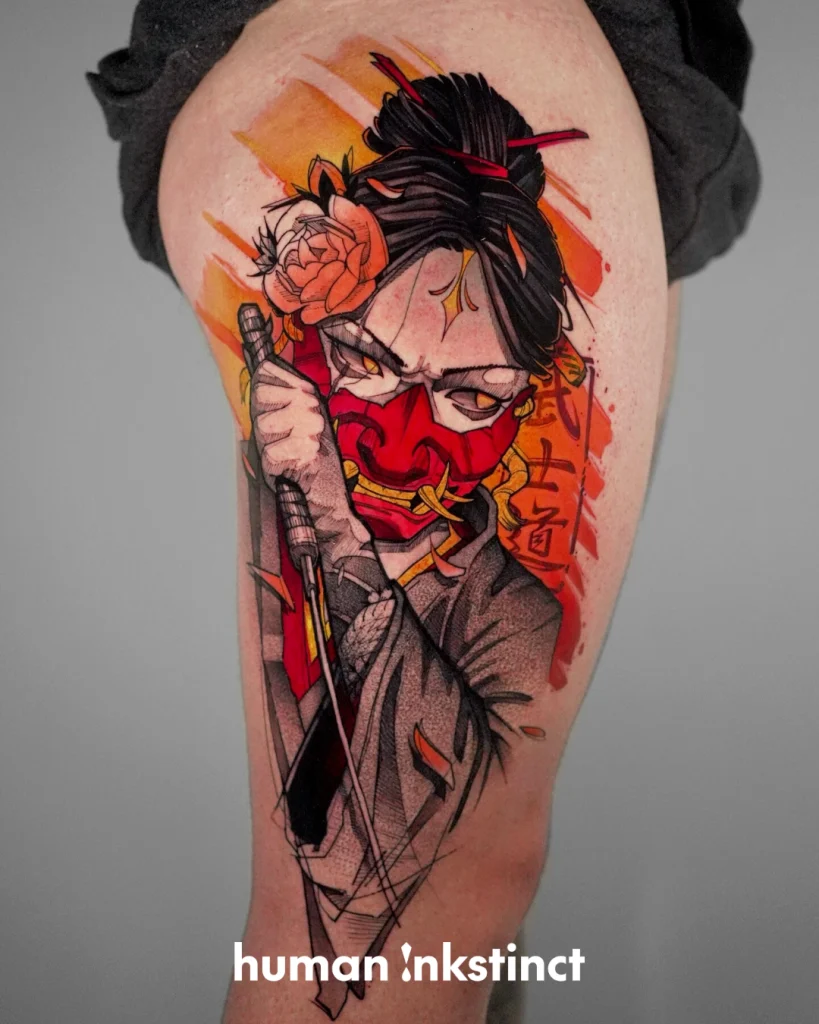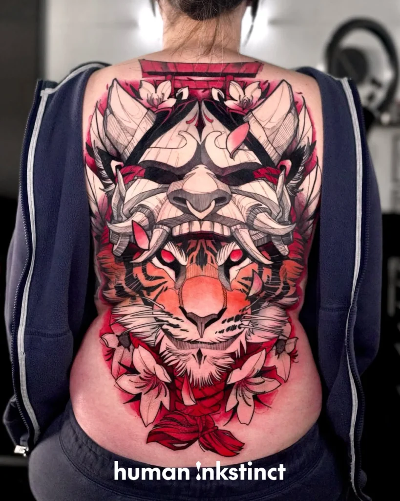 Kraftvolle Sketchart- & Graphic-Tattoos mit starken Farbakzenten