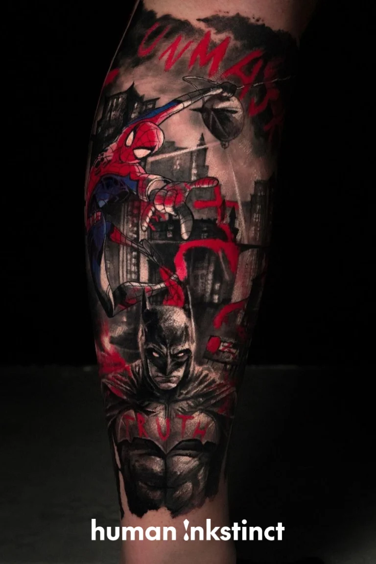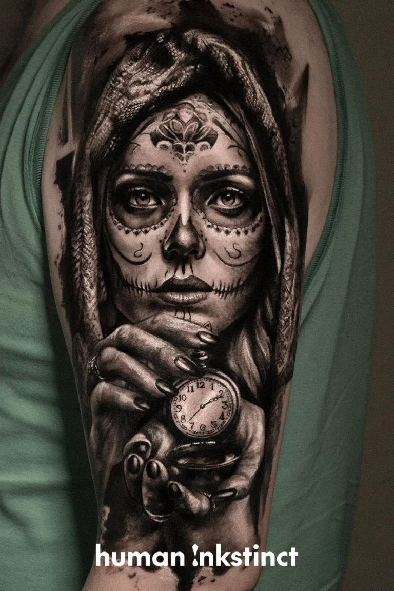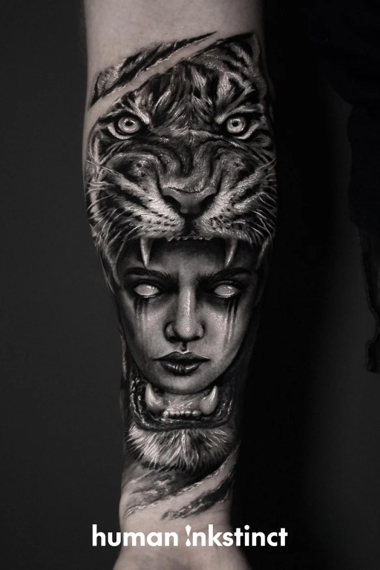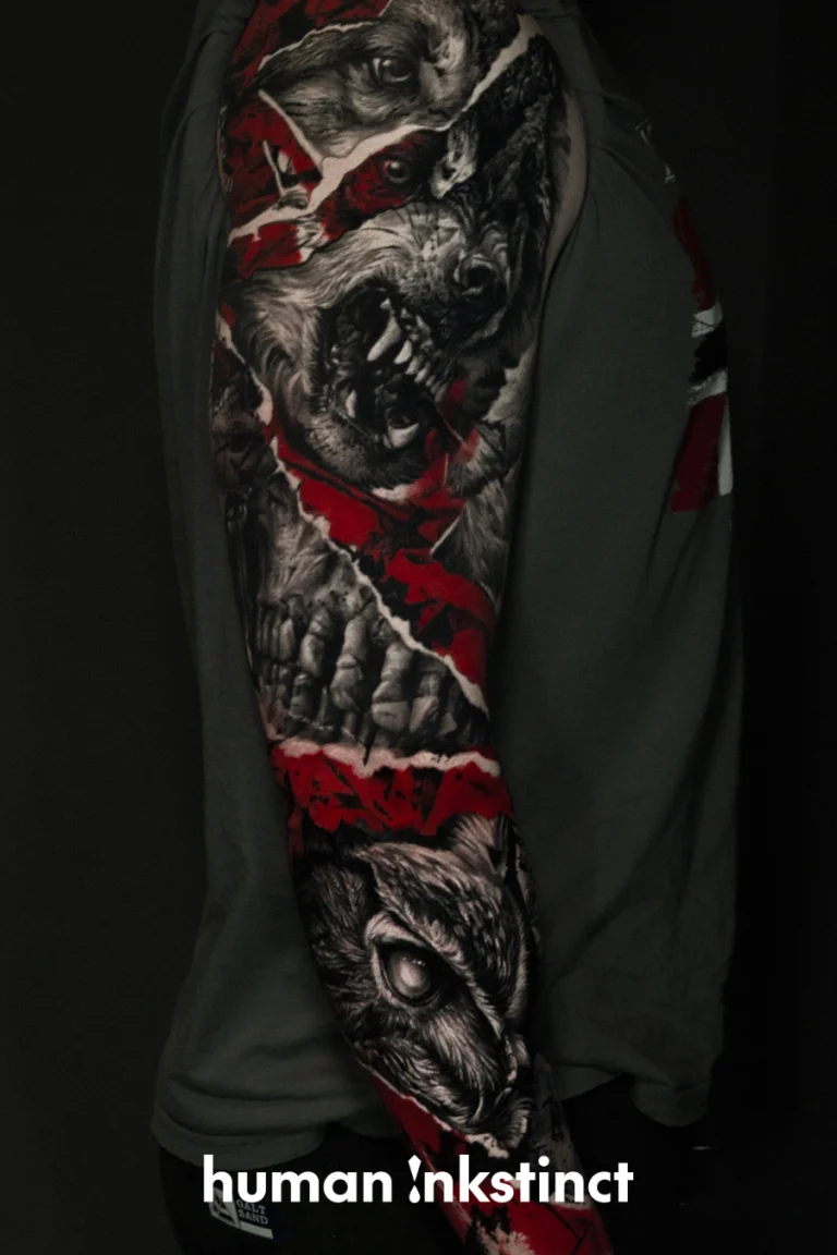 Realistic-Tattoos mit düsterem Flair und Trash Polka-Elementen