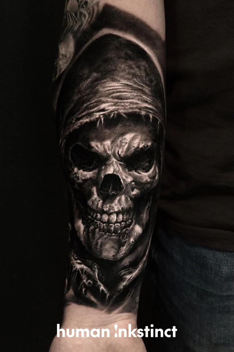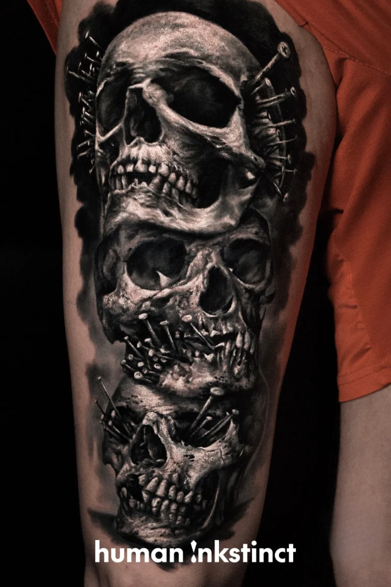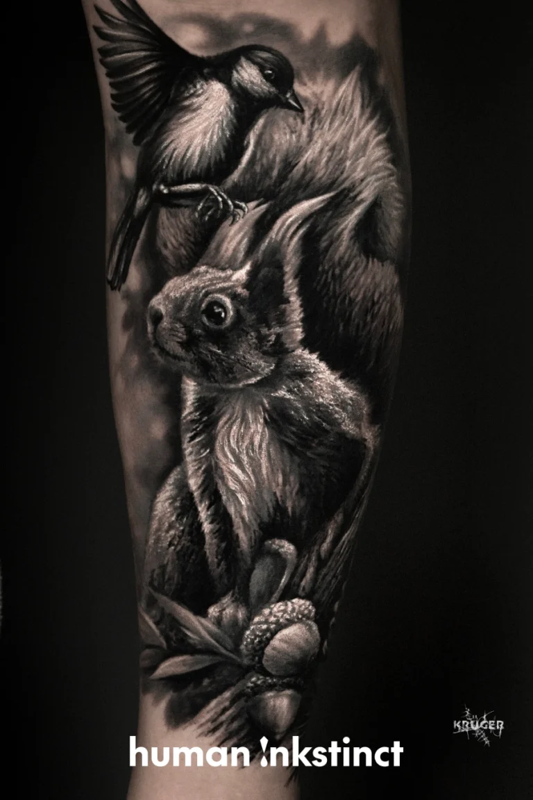 Wenn du ein Tattoo mit dunklem, ausdrucksstarkem Charakter möchtest, das durch Kamils kreative Mischung aus Realismus und Trash Polka besticht, dann sichere dir jetzt deinen Termin bei ihm.