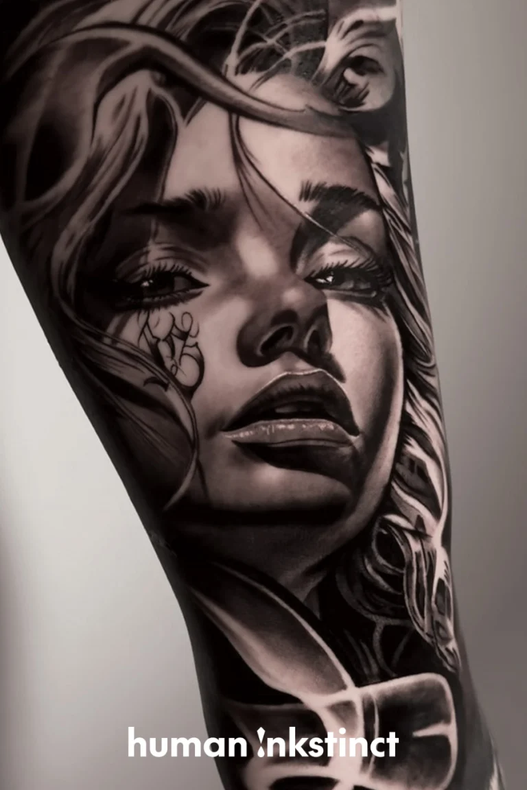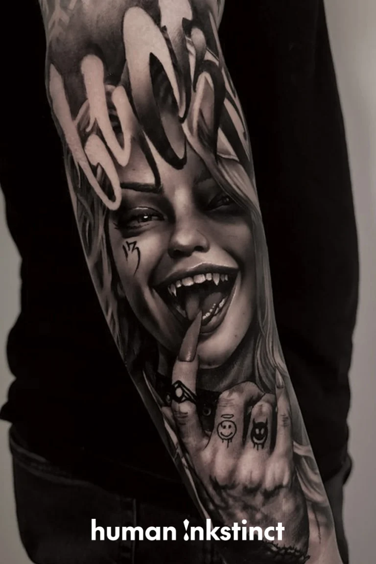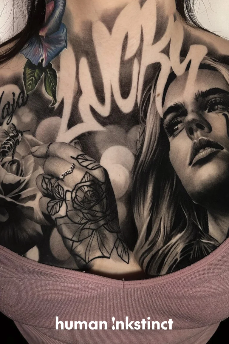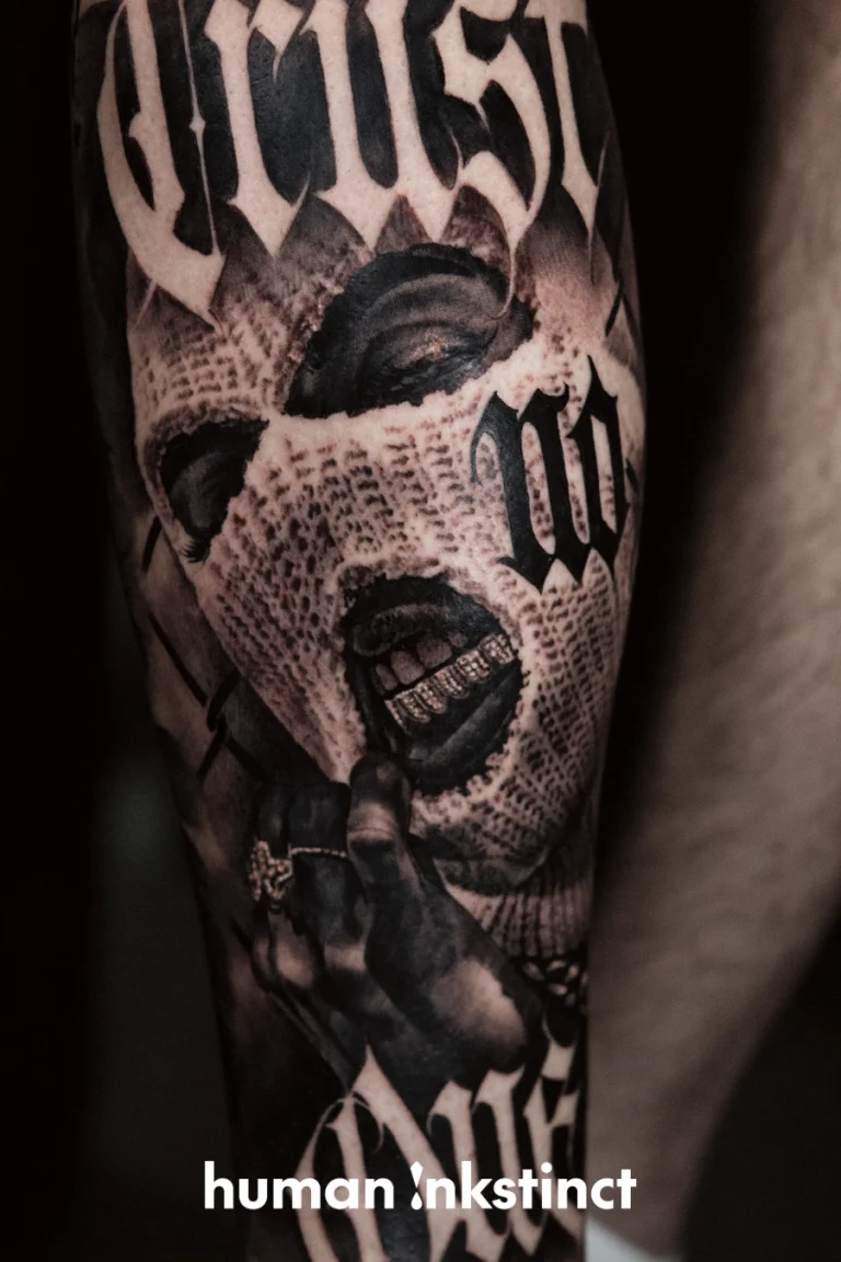 Ob Portraits, Szenen oder abstrakte Motive – Lukasz fügt seinen Tattoos durch seine markanten Lettering-Details eine persönliche Note hinzu, die jedes Werk zu einem individuellen Kunstwerk macht. Seine Tattoos wirken wie lebendige Street-Art auf der Haut und erzählen Geschichten, die den Betrachter fesseln.