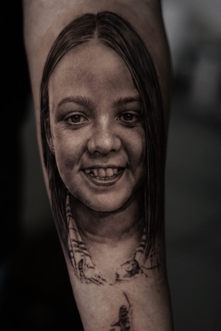 Für Pedro ist das Stechen von Portraits Routine, was seinen Kunden ein hohes Maß an Sicherheit und Vertrauen gibt. Gerade bei einem so emotionalen und anspruchsvollen Motiv wissen seine Kunden, dass sie bei ihm in den besten Händen sind. Seine Kunstfertigkeit sorgt dafür, dass jedes Portrait lebendig wirkt und die Persönlichkeit des Motivs perfekt eingefangen wird.