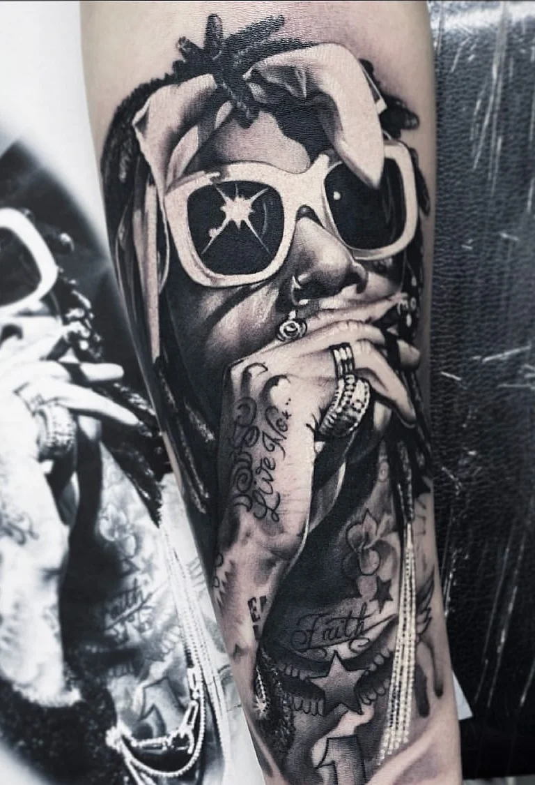 Saimon ist ein herausragender Black-and-Grey Realistic Artist, dessen Arbeiten durch beeindruckende Präzision, Tiefe und Style überzeugen. Seine Motive bewegen sich oft an der spannenden Schnittstelle zum Chicano-Stil – geprägt von starken Kontrasten, ausdrucksstarken Portraits und feinster Linienführung. Was seine Tattoos unverkennbar macht: der Einfluss seiner großen Leidenschaft für Hip-Hop. Dieser Lifestyle fließt in jedes seiner Designs mit ein – ehrlich, roh und voller Charakter.