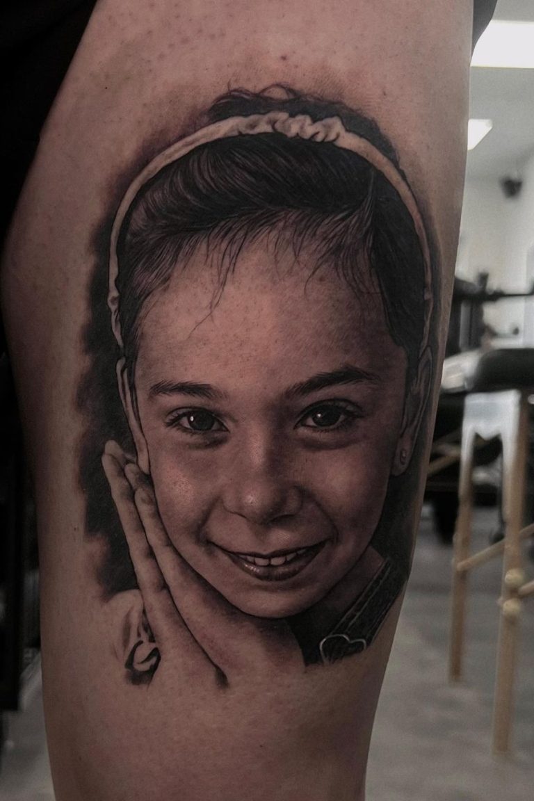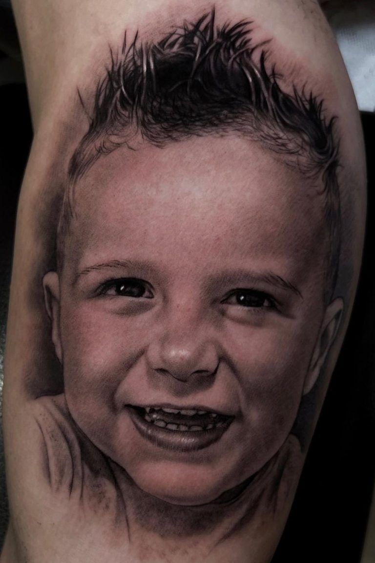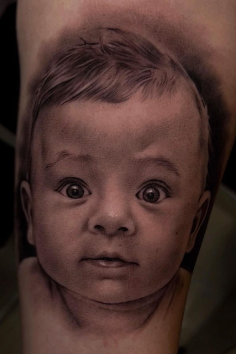 Portrait-Tattoos sind besonders anspruchsvoll, da es darauf ankommt, jede Nuance des Gesichts oder auch eines Tieres detailgetreu wiederzugeben. Feinste Schattierungen und exakte Linienführung sind entscheidend, um den Charakter und die Emotionen des abgebildeten Motivs realistisch einzufangen. Portrait-Tätowierungen sind ideal für Menschen, die eine bleibende Erinnerung an eine geliebte Person oder Ikone auf ihrer Haut tragen möchten.